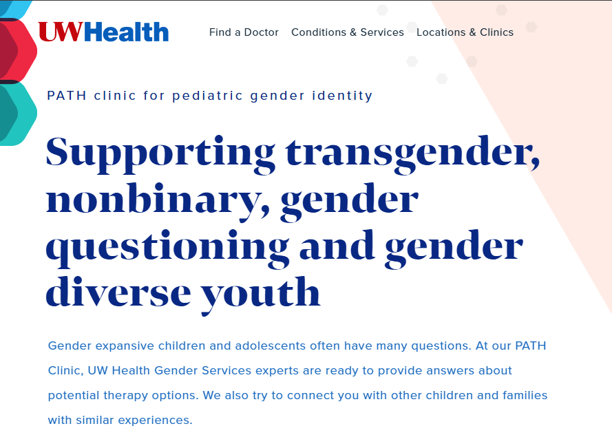 The Pediatric and Adolescent Transgender Health clinic at UW Health was founded in 2013 and provided “services to children of all ages.” Treatments offered by PATH include “gender-affirming” hormone therapy, puberty suppression, and mental health counseling.