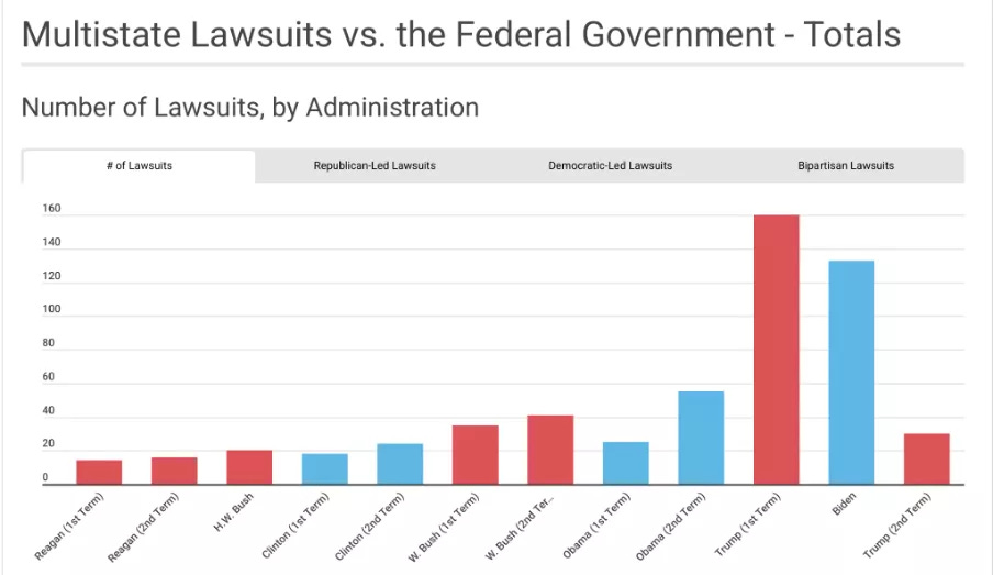 It is not unprecedented for attorneys general of one party to co-litigate or sign onto lawsuits against the federal administration of the opposing party, but this tool has been used with increasing frequency since Trump’s first term.